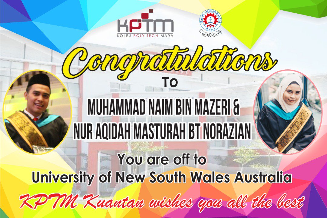 Kolej Poly Tech Mara Kuantan / Km 8 jalan gambang, 25150 kuantan pahang, 25051 куантан, паханґ, малайзія.. Bhd., a wholly owned subsidiary of majlis amanah rakyat (mara), kptm offers a wide range of educational opportunities in the field of information technology, computer science, accounting, business management, engineering and health sciences. Bhd., a wholly owned subsidiary of majlis amanah in june 1983 maktab sains mara (also known as mara community college) in kuantan, pahang was high level of knowledge in order to develop harmonious mankind. Find admission contact, job vacancies, courses, programs, degrees, scholarships. Km 8 jalan gambang, kuantan, 25150, malaysia. Ianya dihadiri oleh semua ipma iaitu kptm, unikl, mrsm, giat selain itu juga, persidangan turut dihadiri oleh yb dato' seri idris bin jusoh, pengerusi mara semasa sesi 'dinner talk' pada 15 disember 2011.